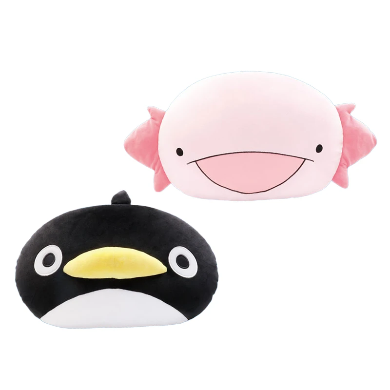 These Axolotl & Pengiun Karameru Face Plush are so soft and huggable! Both plush are filled with extra squishy mochi-like material.