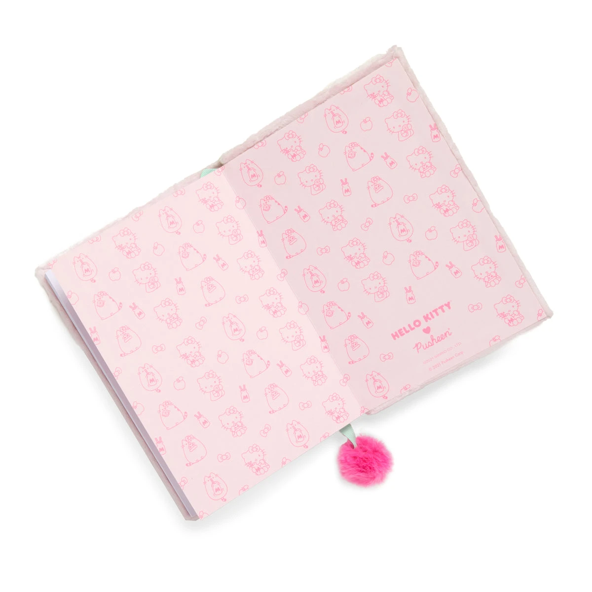 Write the cutest notes in this Hello Kitty x Pusheen Plush Notebook! This notebook features an applique plush front cover and a bright pink pompom pagemarker.
