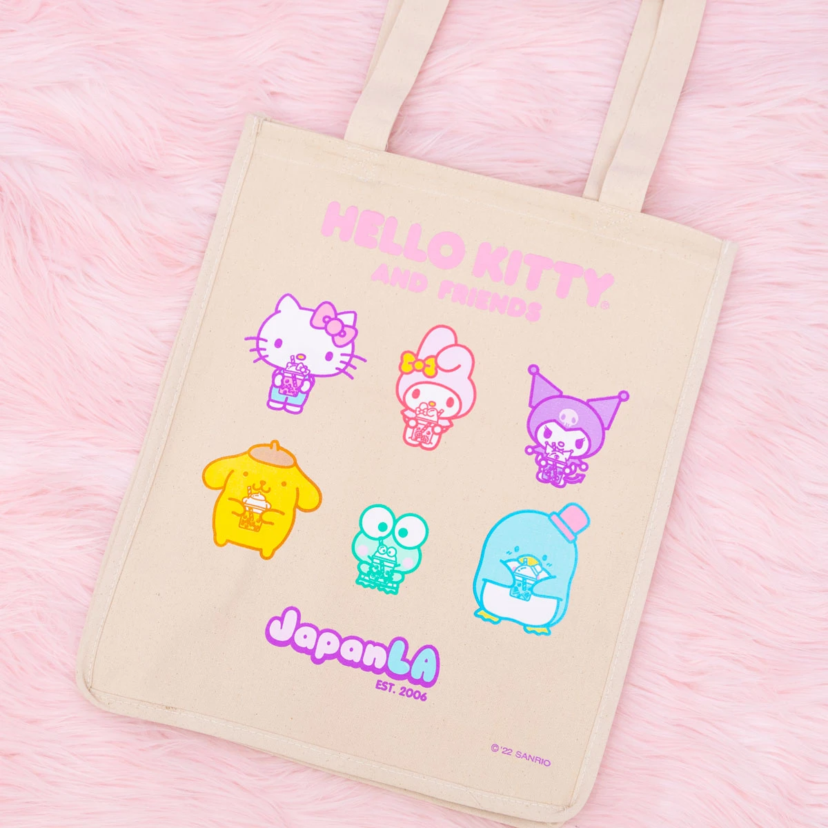 Stay stylish with this JapanLA Hello Kitty and Friends Boba Canvas Tote! Features your fav characters as boba cups on the front! This big sturdy canvas tote is the perfect size for carrying all your things!