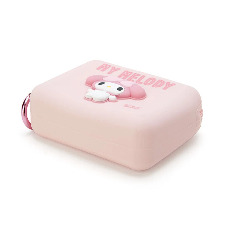 Carry around your cute items in this silicone mini pouch! Features My Melody, Cinnamoroll, Kuromi, or Hangyodon on the front, a zipper closure and a clip so you can take it anywhere you go!