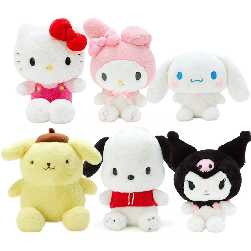 These adorable classic-styled plush are “Sanrio Original” collectible items! Each one is made with deluxe high quality plush fabric. Their heads are densely filled to give them a cute plump look. Their feet and bottoms are filled with beanies which makes them sit well on your shelf and easy to pose for photos. (Cinnamoroll has extra beanies in his feet, belly, bottom, and ears!) A perfect gift for the Sanrio fan who has everything.