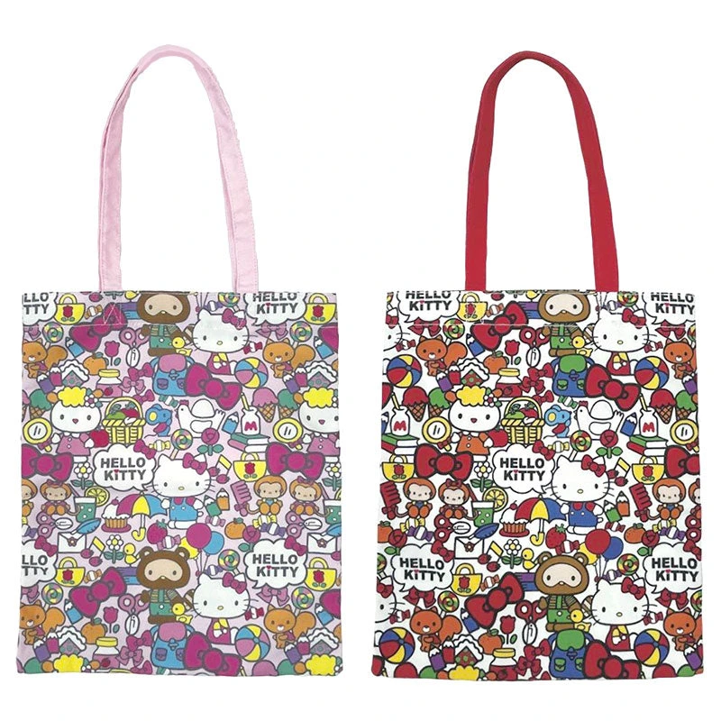 Carry your stuff in this cute Hello Kitty tote bag! Available in two different colors: red or pink.