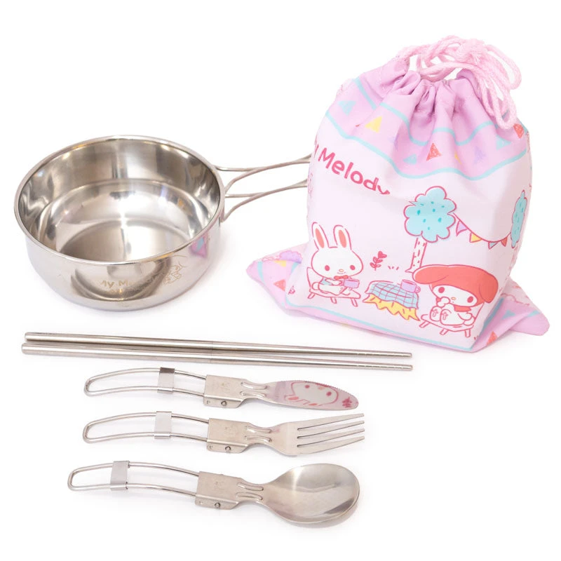 Includes a 5″ bowl, 8″ chopsticks, 6″ butter knife, 6″ spoon, and 6″ fork all in an 8″ x 7″ drawstring bag.