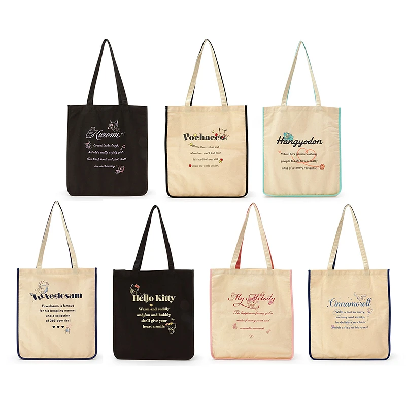 These charming tote bags include cute facts about your favorite Sanrio characters! With one large compartment and one smaller pocket inside, there’s plenty of room for all of your goodies. These tote bags are perfect for the Sanrio fan who loves to keep it sweet and simple!
