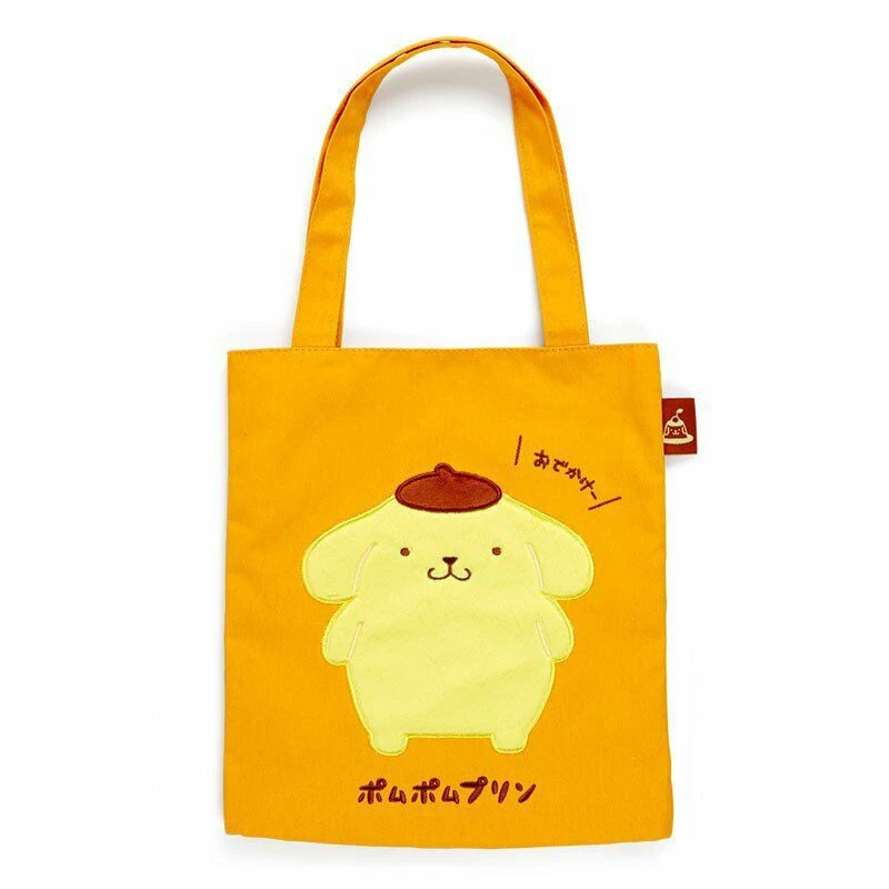 Carry all of your pudding in this Pompompurin tote bag! The bag features your favorite Sanrio golden retriever with all of his friends, sewn on with premium embroidery. There is plenty of room to fit all of your things, and includes a little pocket inside for smaller items!