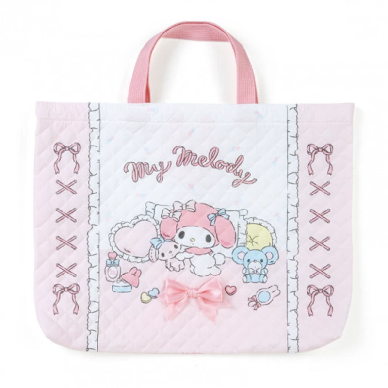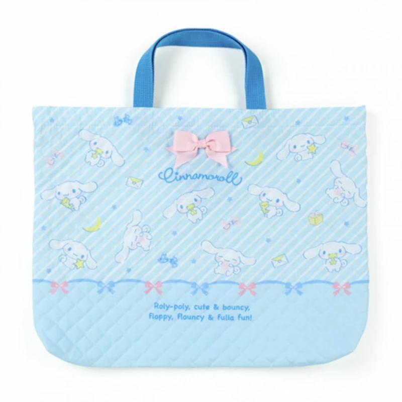 These quilted tote bags are super soft and super stylish! Each tote bag is cushioned and is the perfect way to carry your cutest items! Comes in the style of three different Sanrio characters: Hello Kitty, My Melody, and Cinnamoroll.