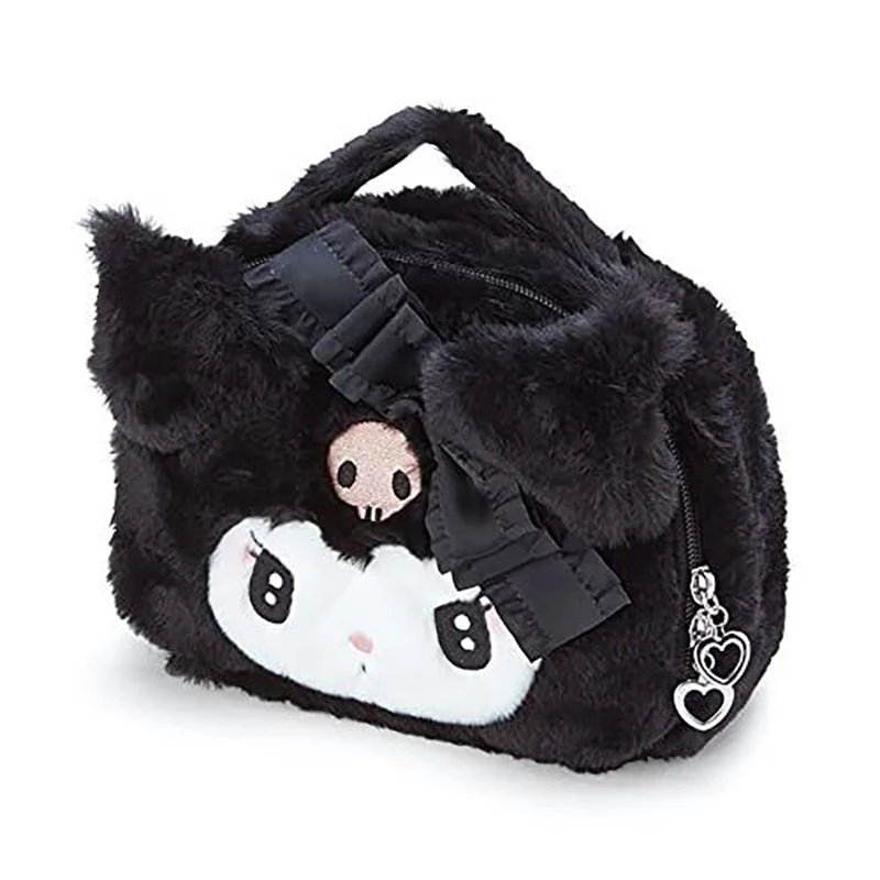 ITS. SO. FLUFFY!!!! This Kuromi Die-Cut pouch is so soft and so useful! It opens up with a zipper on the front and comes with a large inner pocket inside. Stay super cute with Sanrio!
