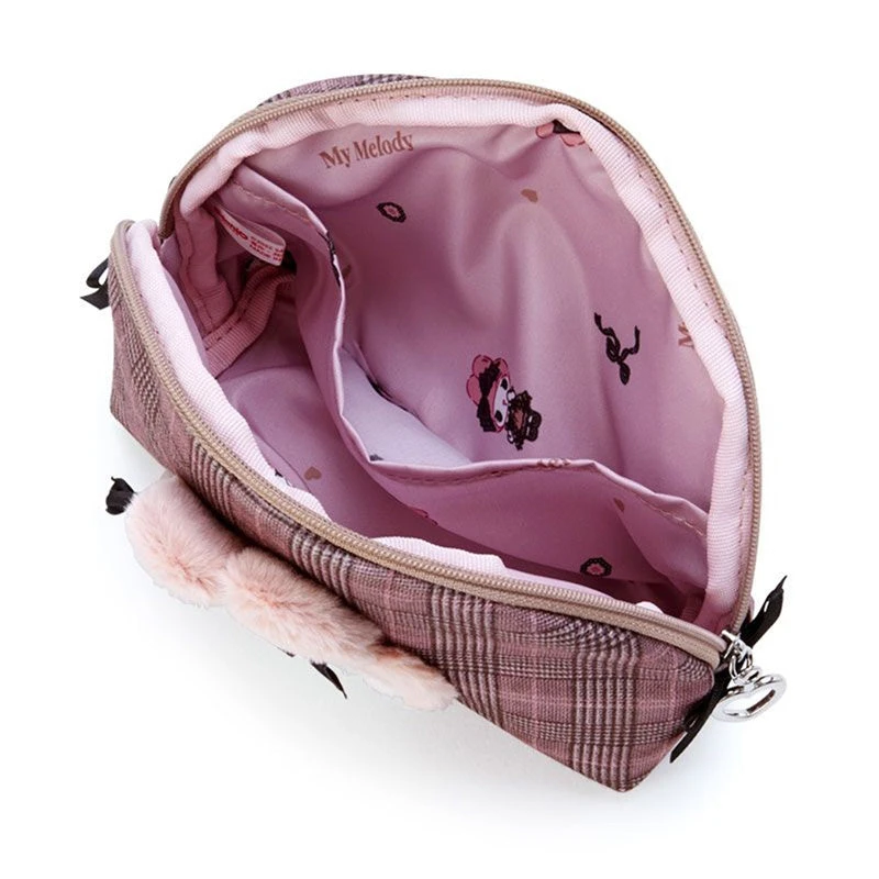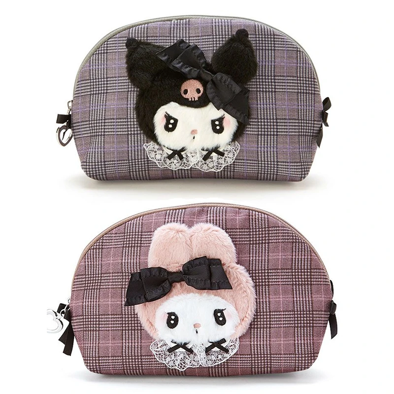 Keep all of your cutest cosmetics in this goth styled Sanrio Secret Melokuro Plaid Pouch! Each pouch comes with one larger inner compartment and one smaller pocket for little trinkets!