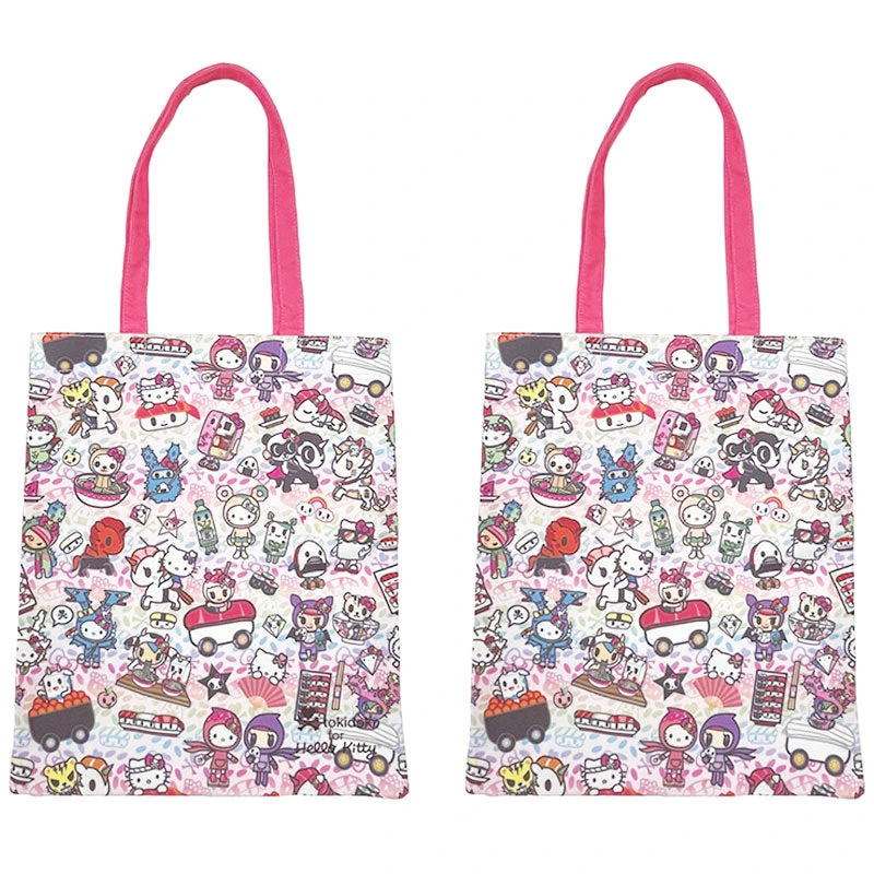 Carry your belongings in this cute Hello Kitty Tote Bag! It comes in two adorable styles: All Over Print style with red handle or Cream colored print with white handle.