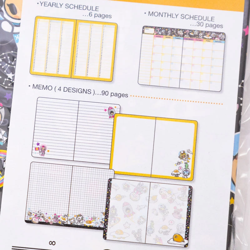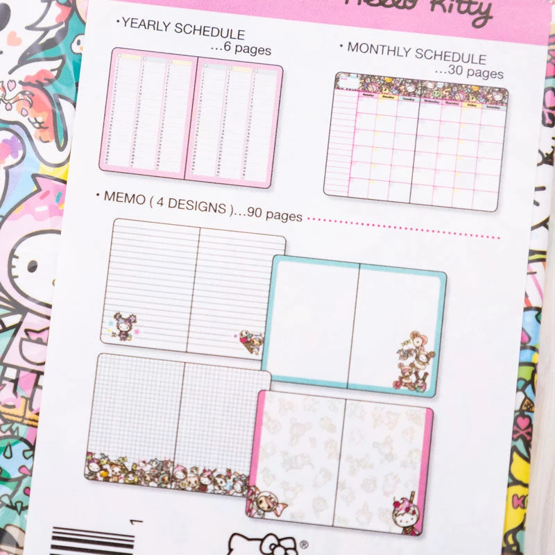 Keep your plans organized in a cute tokidoki x Sanrio Mini Date Journal! Each mini journal has a yearly schedule (6 pages), monthly schedule (30 pages), and 4 memo page designs for note taking (90 pages).